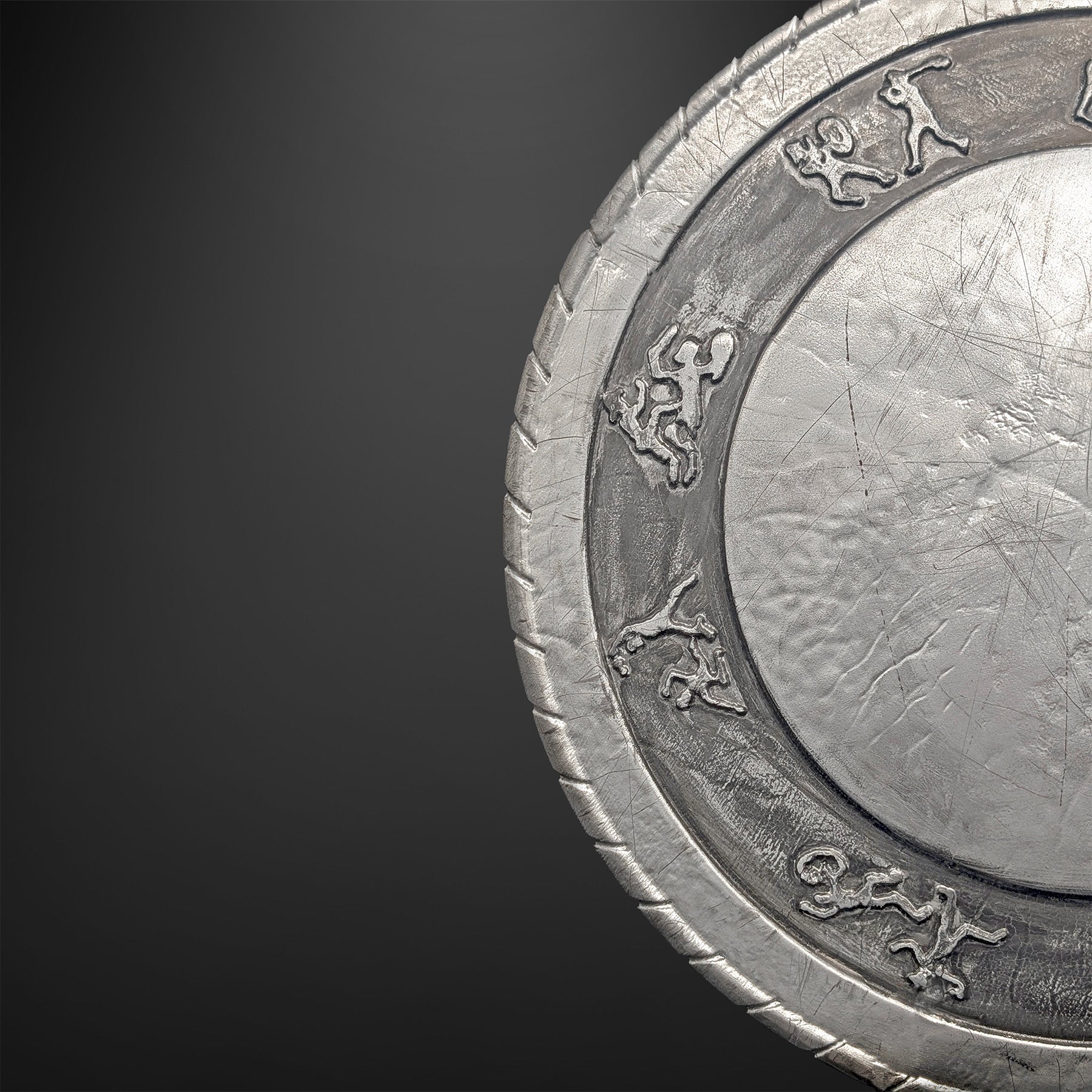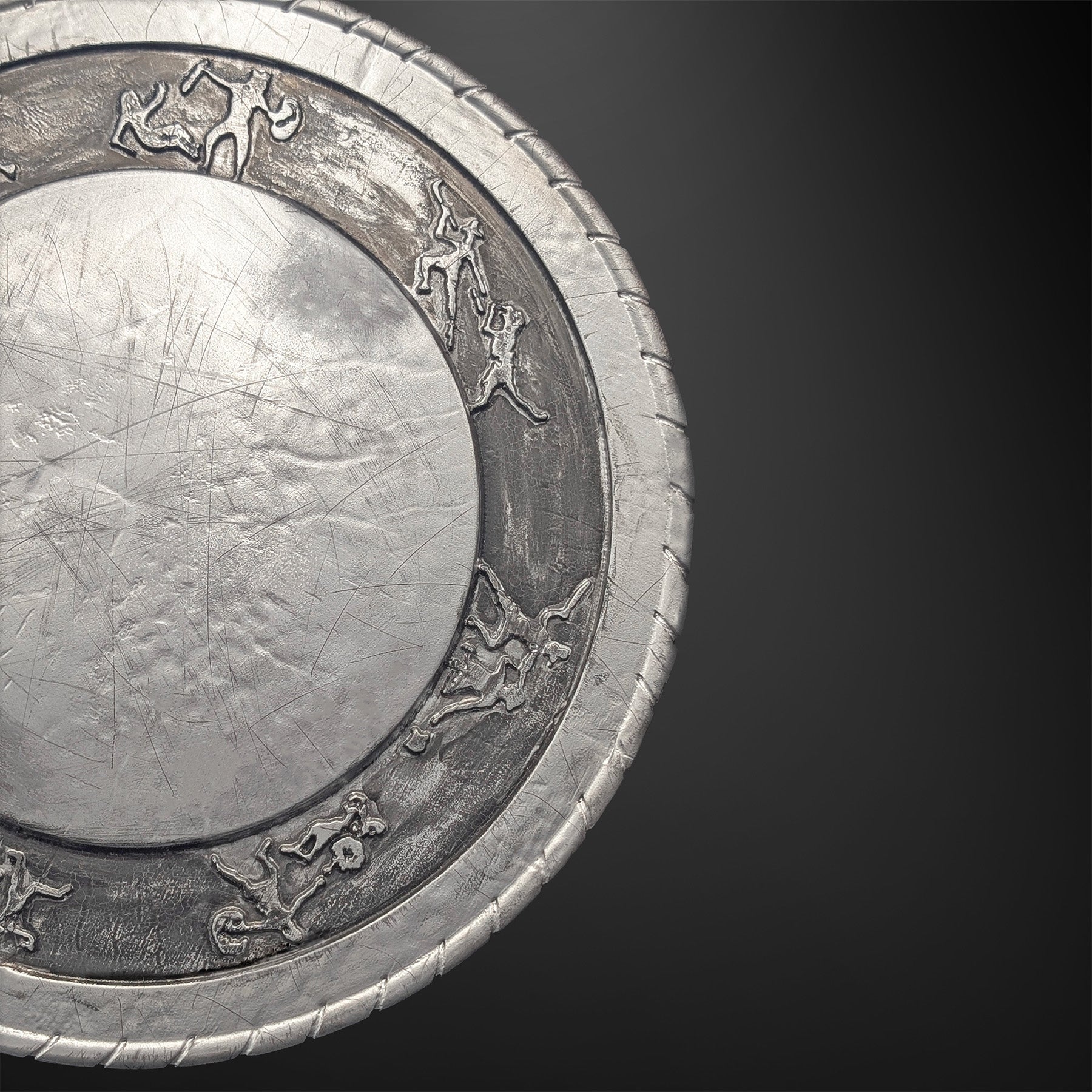 In the pits of the Colosseum, a shield is more than cover. It is identity. Maximus’ round buckler carries the story of a soldier turned legend, its hammered face and carved figures catching torchlight between clashing blades. This replica leans on deep screen-reference study to lock in the proportions, ring widths, and relief band so the silhouette reads instantly from across a room. In hand it feels right: dense, cool metallic finish up front, real leather and hardware at the back, and a balanced center that sits steady on the forearm. Built in the Props & Pixels Perth workshop, it arrives ready to wear or mount. No extra work needed.