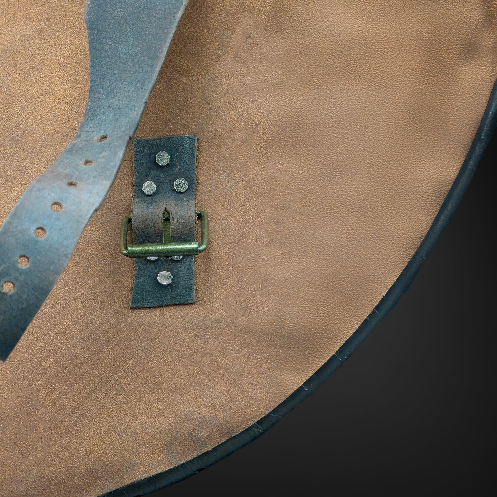 - Top-grain cowhide rear straps with brass buckle, steel rivets, punched holes