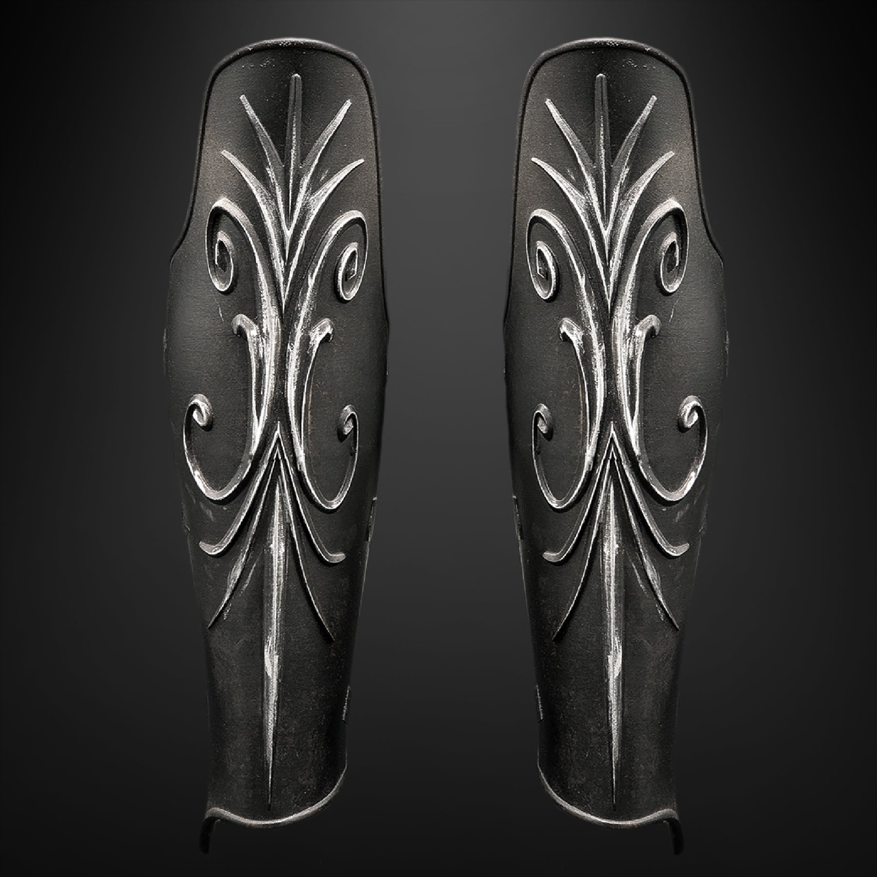 Maximus never went to battle half-dressed. The carved lines and blackened sheen of his greaves did more than protect— they told the crowd who owned the arena that day. Our Gladiator shin greaves channel that same presence, shaped from detailed screen references to capture the flowing relief work and purposeful wear. The ABS+ shells have a confident, leather-like flex with the right weight in hand; steel lacing loops are bronzed and threaded with real leather cord so they tie off like period kit. Subtle silvering rides the raised motifs, and the edges are softened for comfort. Straight from the Props & Pixels Perth workshop, these arrive ready to lace and wear—no finishing, no fuss.