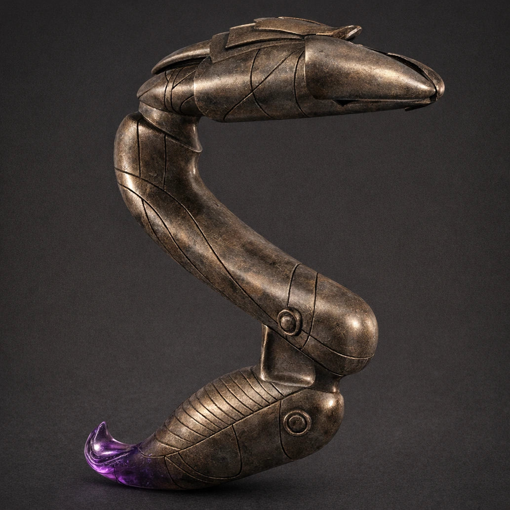 Hand-finished in a weathered, dark bronze with striking blue accents, this piece reflects the ancient and mysterious craftsmanship of Goa'uld technology. Every contour, etching and layered detail is designed to match the look seen on screen — without compromising its structural durability for real-world handling.